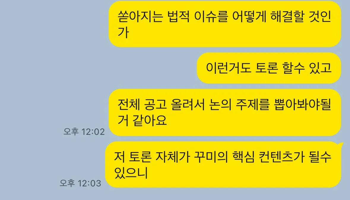 음 이건 이번 회의때 상의해보겠습니다 ^^
